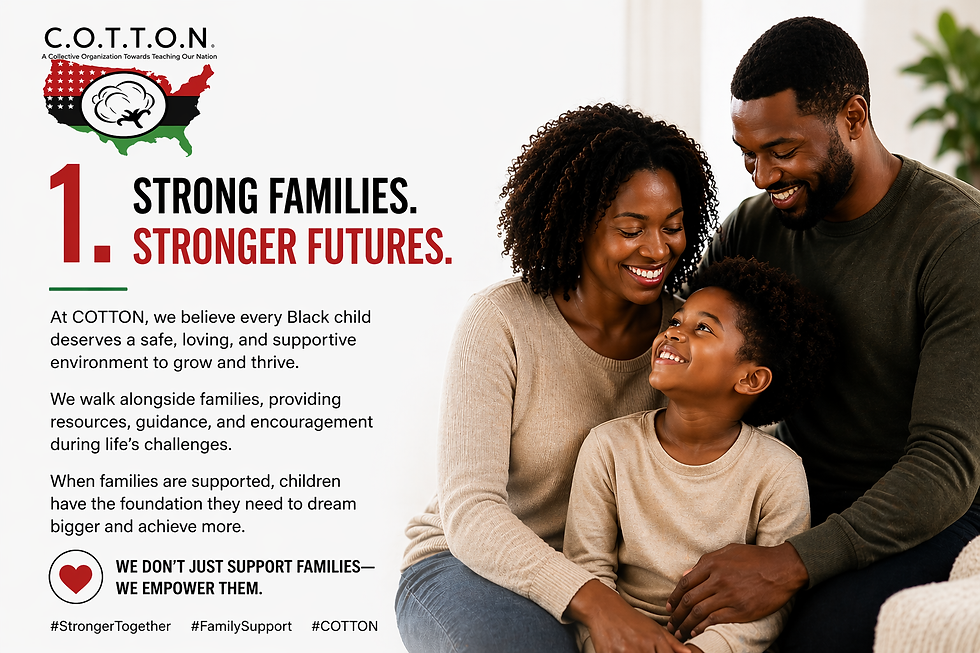 Strong families are the foundation of strong communities. At C.O.T.T.O.N., we believe every Black child deserves a safe, loving, and supportive environment to grow, learn, and thrive.
